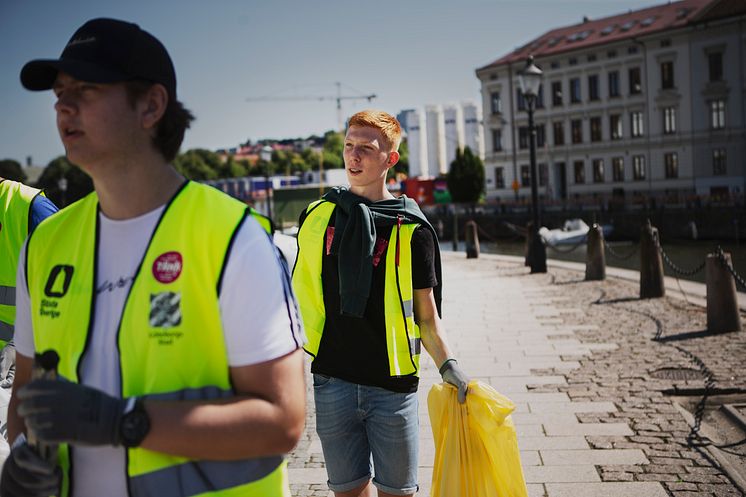 Idrottsungdomar plockar skräp under ett av alla Städa Sveriges miljöprojekt under 2020.