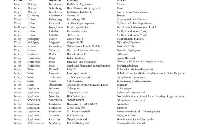• Lista över alla föreningar och platser som är med på Strandens Dag