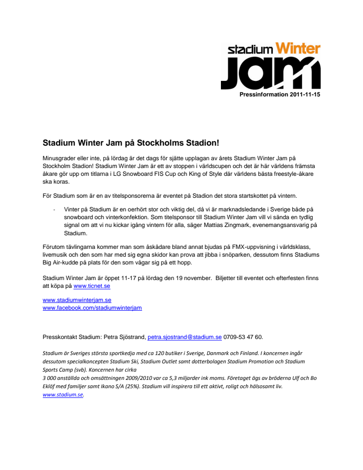 Minusgrader eller inte, på lördag är det dags för sjätte upplagan av årets Stadium Winter Jam på Stockholm Stadion! För Stadium som är en av titelsponsorerna är eventet på Stadion det stora startskottet på vintern.