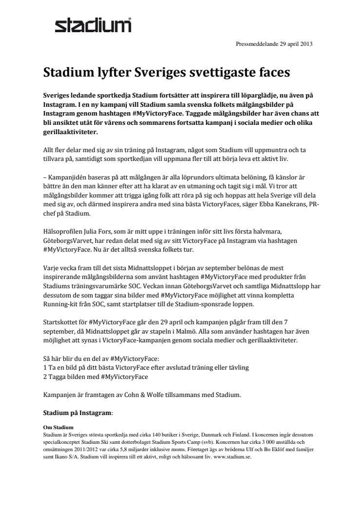 ny kampanj vill Stadium samla svenska folkets målgångsbilder på Instagram genom