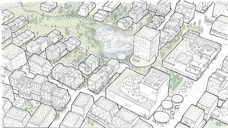 Skiss över Humlestaden. Arkitekt är Henning Larsen Architects.
