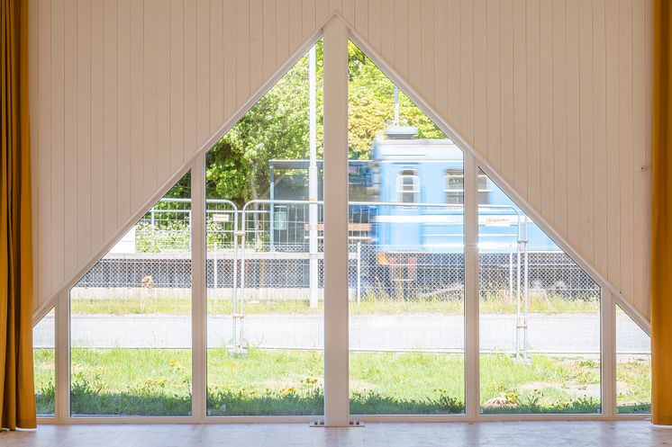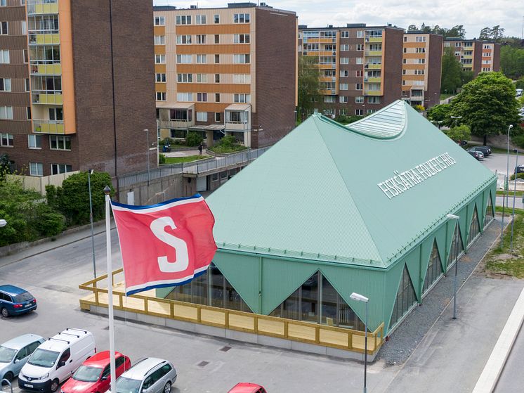– Folkets Hus behövde tillfälliga lokaler under den tid som skolan byggs om. Min tanke blev då att gestalta Folkets Hus som en tillfällig byggnad, ett tält. En byggnad som i sin identitet är tydlig och identitetsskapande i sig själv och för Fisksätra. Färgen jag valde ger en blinkning åt koppartälten i Haga, säger Thomas Sandell, chefsarkitekt på SandellSandberg.
