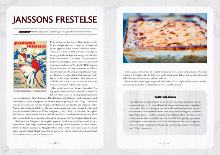 Uppslag ur "Maträtternas historia" Janssons Frestelse