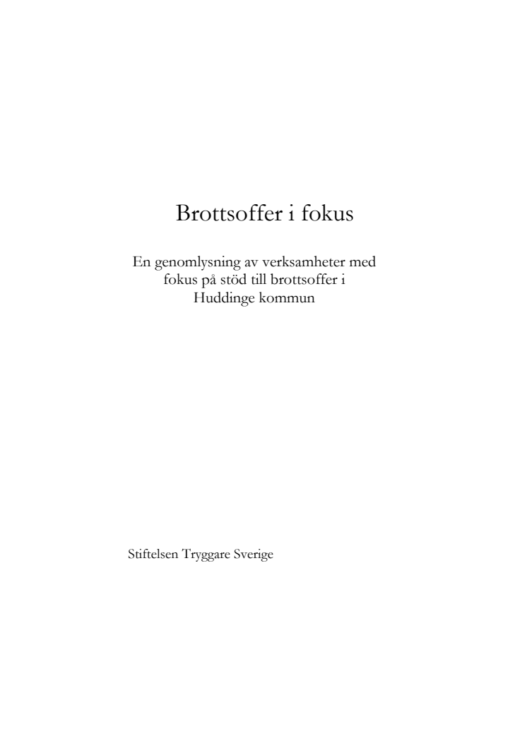 Detta dokument innehåller en genomlysning av hur Huddinge kommun tar sitt ansvar för personer som utsatts för brott. Resultaten visar att det finns många verksamheter som arbetar med brottsofferstöd. Dock krävs att kommunen lyckas få ihop alla verksamheter till en helhet för att säkerställa att de som drabbas av brott får hjälp och stöd.