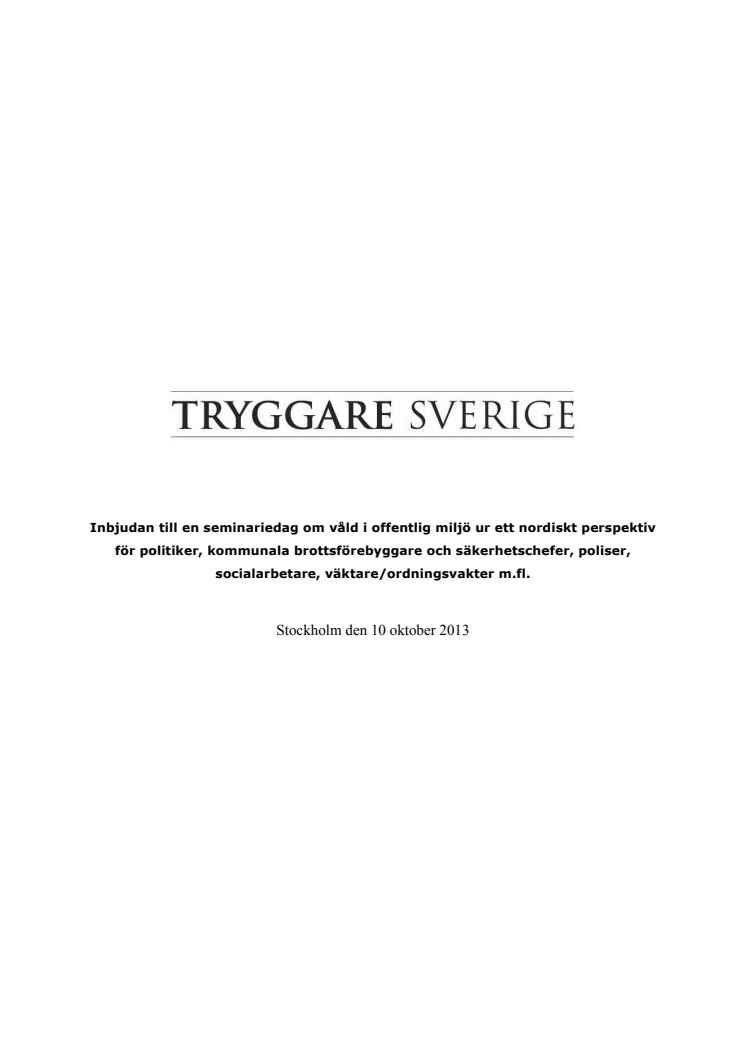 Dokumentet innehåller ett detaljera program för en seminariedag om våld i offentlig miljö ur en nordiskt perspektiv.
