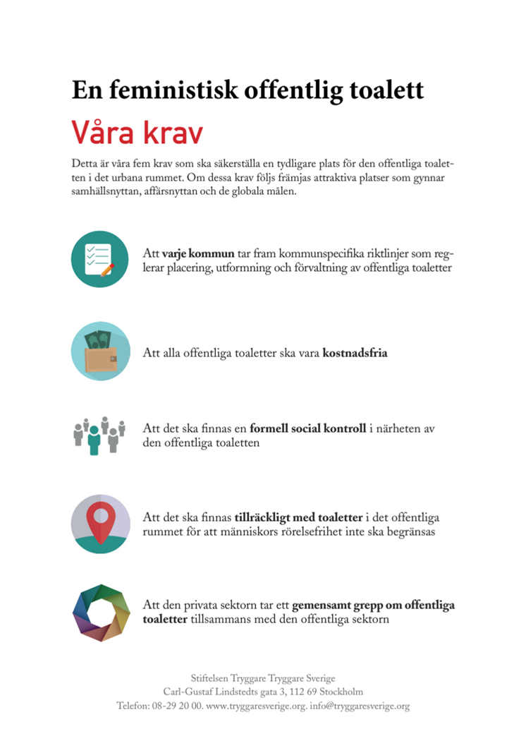Detta dokument innehåller Stiftelsen Tryggare Sveriges krav på säkra och trygga offentliga toaletter.