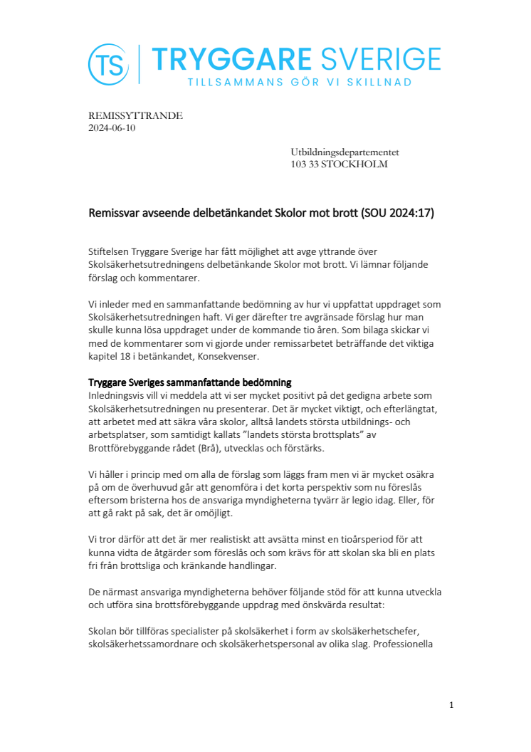 Mejl skickat till __email__. Klicka på länken i mejlet för att följa Stiftelsen Tryggare Sverige.