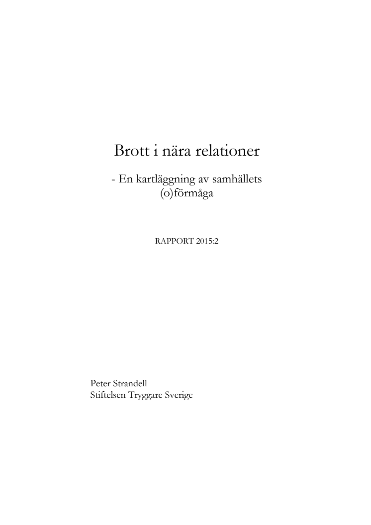 Förra veckan misshandlades en 41-åriga kvinna i Stockholm så svårt att hon senare avled. Gärningsmannen var en 33-årig grovt kriminell man som kvinnan haft en kort relation med. Kvinnan hade tidigare anmält mannen för misshandel, varför mannen var anhållen i sin frånvaro. Mordet föregicks av att åklagaren en knapp vecka tidigare hävt ett anhållningsbeslut för grov kvinnofridskränkning. Frågan många ställer sig är hur detta är möjligt. Frågor om brott i nära relationer har varit på den politiska dagordningen i decennier, men vad händer i praktiken? Hur ser utvecklingen ut och vad kan göras?