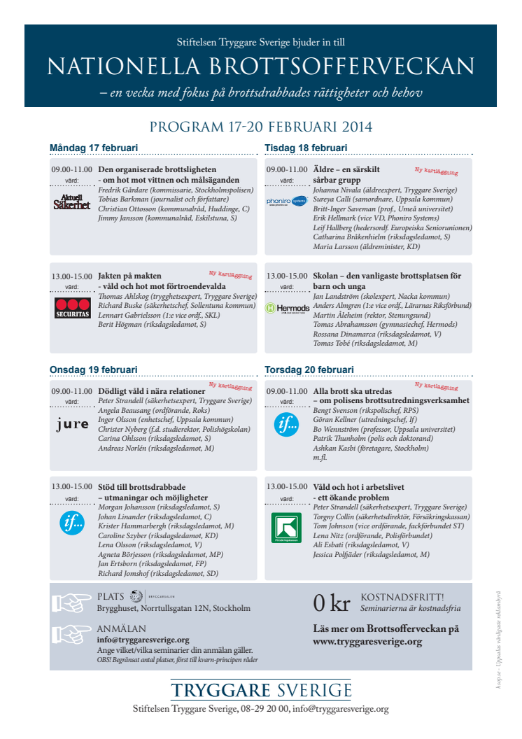 Den 17-20 februari 2014 arrangerar Stiftelsen Tryggare Sverige, tillsammans med bl.a. If, Nationella Brottsofferveckan 2014.
