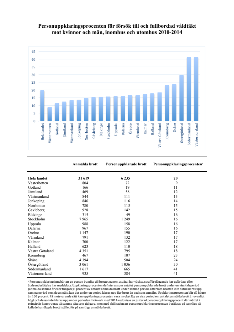 - Av de sammanlagt 31 619 våldtäkter som anmäldes under perioden 2010-2014 klarades endast 6 235 upp i den meningen att en gärningsperson kunde knytas till brottet. Det motsvarar en personuppklaring på 20 procent under den gångna femårsperioden, säger personsäkerhetsexperten Peter Strandell (Tryggare Sverige).