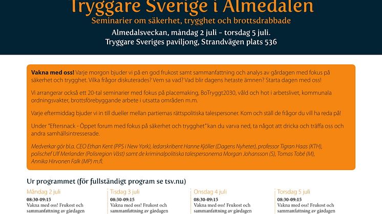 Tryggare Sverige i Almedalen 2018 - inbjudan till seminarier, fotboll och mingel