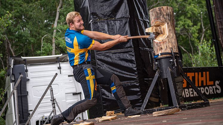 Ferry Svan vinner säsongens första TIMBERSPORTS® tävling - tre av fyra guld till Sverige
