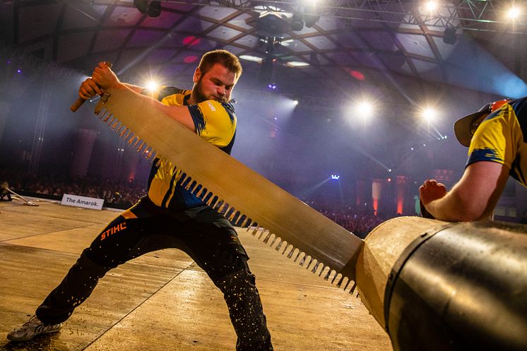 Under fredagen, 28 oktober, går lag-VM av stapeln. Här samlas över 20 nationer, däribland stornationerna USA, Kanada, Australien och Nya Zeeland. I utslagningsdueller tävlar atleterna i lag om fyra, i de fyra grenarna Stock Saw, Underhand Chop, Single Buck och Standing Block Chop. Varje atlet genomför varsin gren i en stafett. Förra gången VM arrangerades slutade Sverige på en sjundeplats. I år har landslaget fina prestationer bakom sig, och siktet är inställt på medaljer.