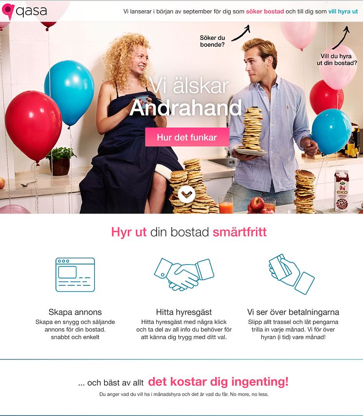 Trots att bostadsbristen i Stockholm ökar står 40 000 boenden i länet tomma. Det är någonting som Qasa, en ny internettjänst, tänker ändra på. Imorgon smyglanserar bolaget sin lösning på Stockholms bostadsproblem.