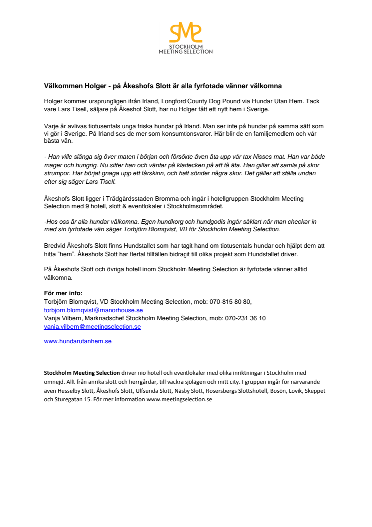 Välkommen Holger - på Åkeshofs Slott är alla fyrfotade vänner välkomna