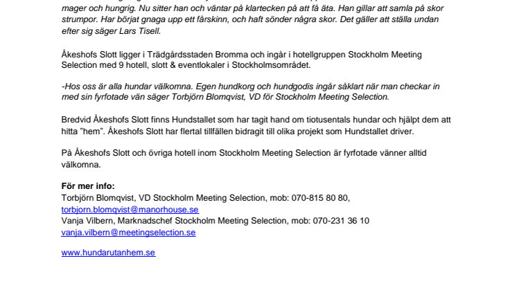 För mer info:Torbjörn Blomqvist, VD Stockholm Meeting Selection, mob: 070-815 80 80, torbjorn.blomqvist@manorhouse.seVanja Vilbern, Marknadschef Stockholm Meeting Selection, mob: 070-231 36 10 vanja.vilbern@meetingselection.se
