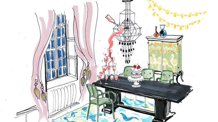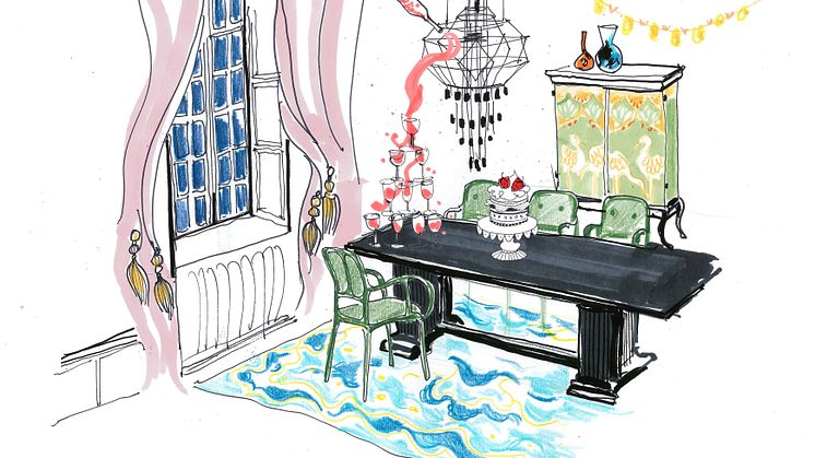 Näsby slott kallas också festernas slott och det nya inredningskoncept 24 Hour Party är punk möter Art Nouveau. En mix av det vackra slottets flärdfulla art nouveaustil och modernare rockiga detaljer. Inspirerat av Alfons Mucha, ikonisk art nouveaukonstnär och nutida modefotografen Tim Walkers överdådiga och gränslösa bilder.