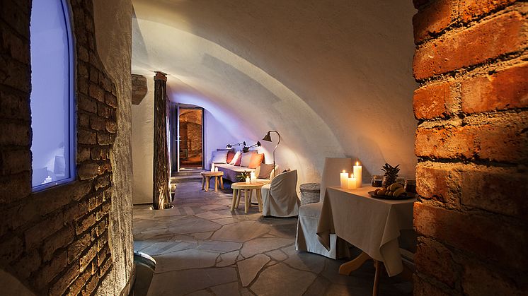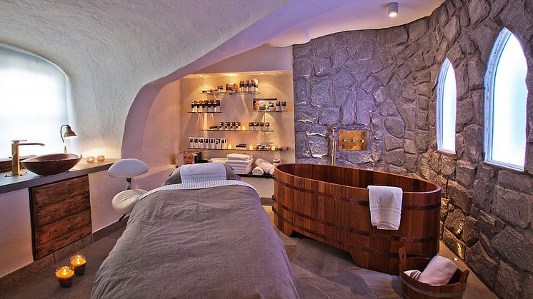 Spa och vinkällare delar samma lokal vilket gör det till en bubblande mötesplats för de som vill kombinera champagneprovningar, bubblande gruppaktiviteter och sköna behandlingar.