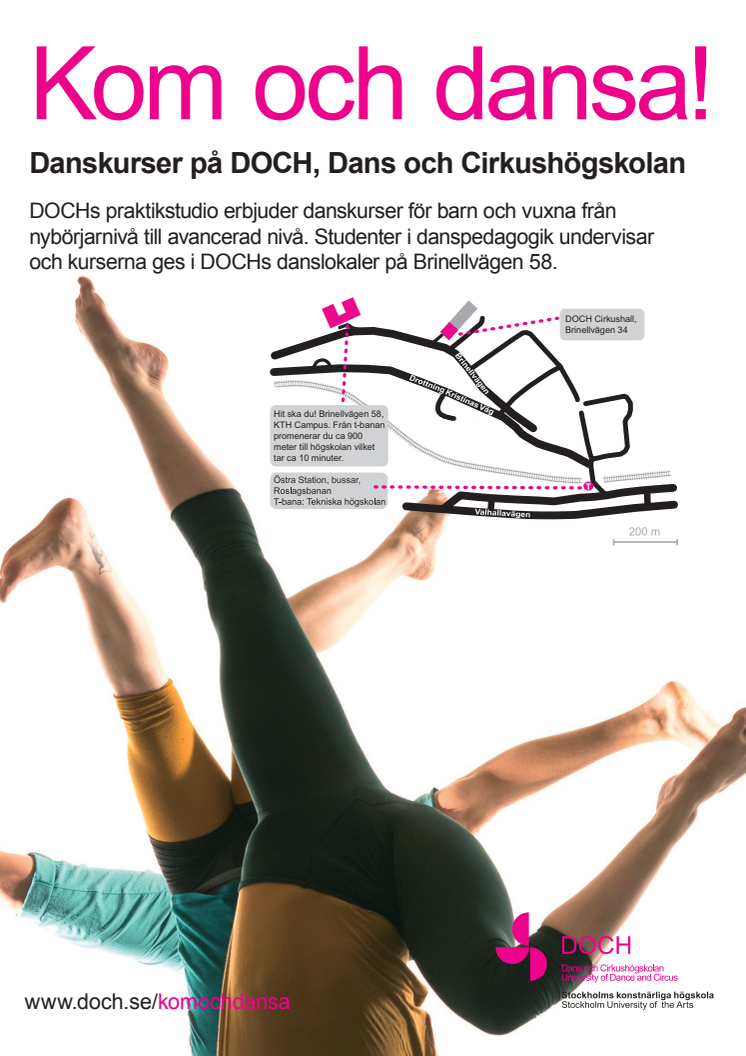 Kurserna ges i DOCHs danslokaler på Brinellvägen 58, KTH Campus, Stockholm. Tunnelbana: Tekniska högskolan. Kurstart är vecka 3 och 4.