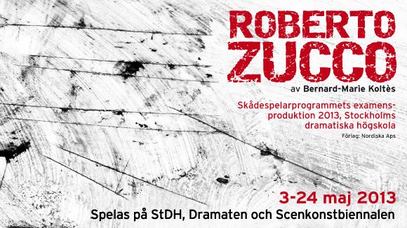Stockholms dramatiska högskola presenterar vårens examensproduktion ROBERTO ZUCCO av Bernard-Marie Koltès med avgångsklassen i skådespeleri. För regin står Tobias Theorell och scenografin är gjord av Sören Brunes. Premiär den 3 maj.