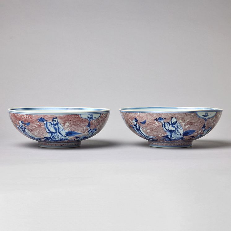 Föremålsnummer: 4319984 1700-talsskålar, dekorerade med “De åtta taoistiska odödliga” och försedda med kejsaren Qianlongs märke