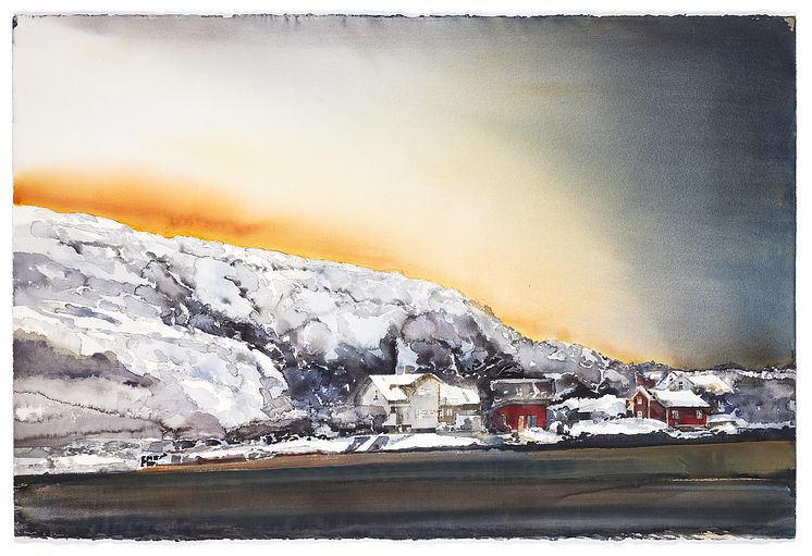 Solnedgång vid havet av Lars Lerin