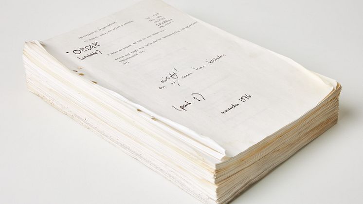 Eller kanske de 303 maskinskrivna sidorna som utgör "'ORDER' (arbetstitel)", med författaren Lars Noréns egenhändigt adderade rättelser och namnteckningar? Det färdiga resultatet av detta manus – diktsviten "Order" – utgavs på Bonniers förlag 1978, och omfattade då 263 tryckta sidor. Manuskriptet som nu bjuds ut till auktion är mest sannolikt ett första utkast, då man på första sidan finner ett "approximativt arbetsschema". Den nuvarande ägaren bodde granne med Lars Norén på Gotland och fick 2014 i uppdrag av författaren att tömma skrivarstugan, med löfte att behålla det han ville och deponera resten.