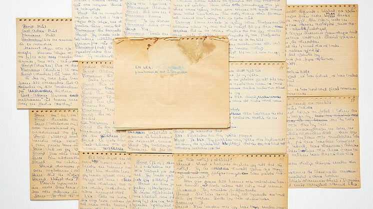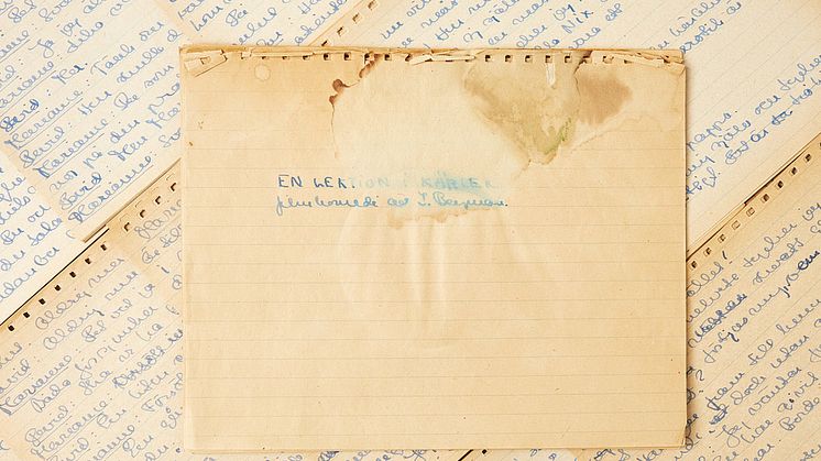En annan fascinerande inblick bjuds i det av Ingmar Bergman handskrivna manuskriptet "En lektion i kärlek, en filmkomedi av Ingmar Bergman" från 1953-54, där 169 numrerade blad samlats i en senare tillverkad mörkröd kassett med skinnrygg. Filmen spelades in under sensommaren 1953 och hade urpremiär på Röda Kvarn i Stockholm den 4 oktober 1954.