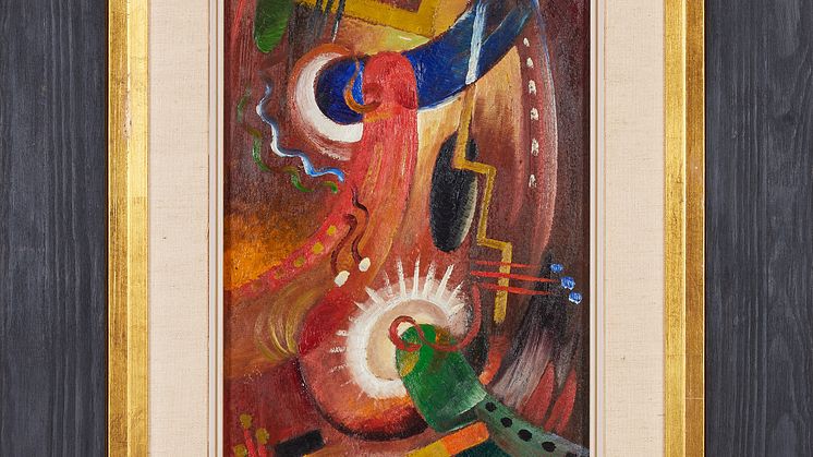 – Den här målningen av GAN är en av mina personliga favoriter i auktionen, framför allt eftersom den är så typisk för honom och för den här tiden i historien. Den visar på maskinvurmen som verkligen var på tapeten då. Samtidigt finns här en dold sexualitet som anas i formerna, och som skapar en spänning mellan konstnären och betraktaren. Målningen har det där fasettartade som var typiskt GAN men man kan samtidigt se en övergång mot mer syntetiskt måleri, en teknik han började använda efter att han blev allt mer inspirerad av Fernand Legér. Det är precis såhär en målning från slutet av 1910-talet ska se ut. Med typiska detaljer och element, samt GAN:s otroligt fina ankarsignatur så klart.