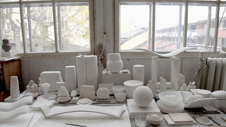 Liss tog över sin fars ateljé 1951 och arbetade där fram till sin död år 2000. Då erbjöds Eva Lange att ta över den och hon arbetar där än i dag. Verken som nu ska säljas på auktion kommer från de båda konstnärernas familjer och vissa direkt från ateljéhuset på Södermalm. Vid första anblick är Eva Langes organiska skulpturer abstrakta och rena i sitt uttryck, men i sitt skapande söker hon inte efter abstraktion utan efter kärnan i varje föremål som gestaltas. Verken har direkta titlar som Vallmon, Trädet