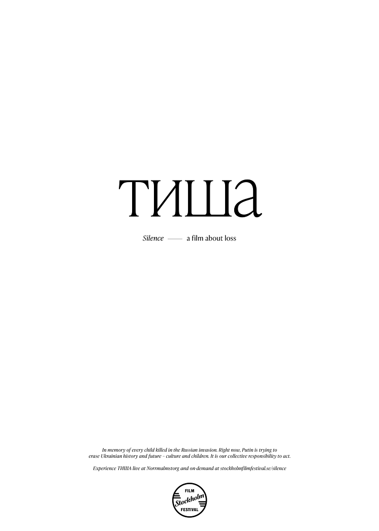 För att uppmärksamma barnens situation i Ukraina, har Stockholms internationella filmfestival gjort den 397 minuter långa filmen тиша (Tystnad) där varje minut representerar ett barn som dödats i kriget. Det är cirka åtta månader sedan Rysslands invasion av Ukraina påbörjades och enligt FN:s rapport den 17 oktober har hittills 397 barn dödats och 723 barn skadats. Nu startar Stockholms filmfestival en insamling för barnen i Ukraina som en del av att Ukraina valts som festivalens fokusland.