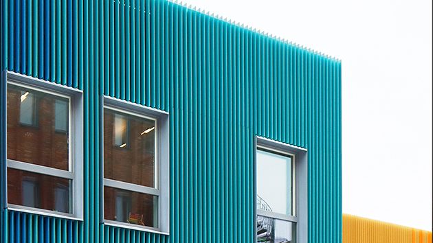 Den gamla tegelbyggnaden utmärks av sin cirka 45 meter höga skorsten, ett viktigt land-märke för området och dess karaktär. Byggnaden har genomgått flera ombyggnationer och dessa årsringar syns på fasaden, där äldre och nyare tegelstenar samsas. Istället för att släta över skillnaden mellan gammalt och nytt beslöt man att låta huset fortsätta berätta sin historia. Det gamla industriområdet har sanerats – mark, väggar och berg har renats och är idag fria från föroreningar. Huset har försetts med bio-sedumtak med gula blommor som drar till sig humlor och gynnar därigenom den biologiska mångfalden.