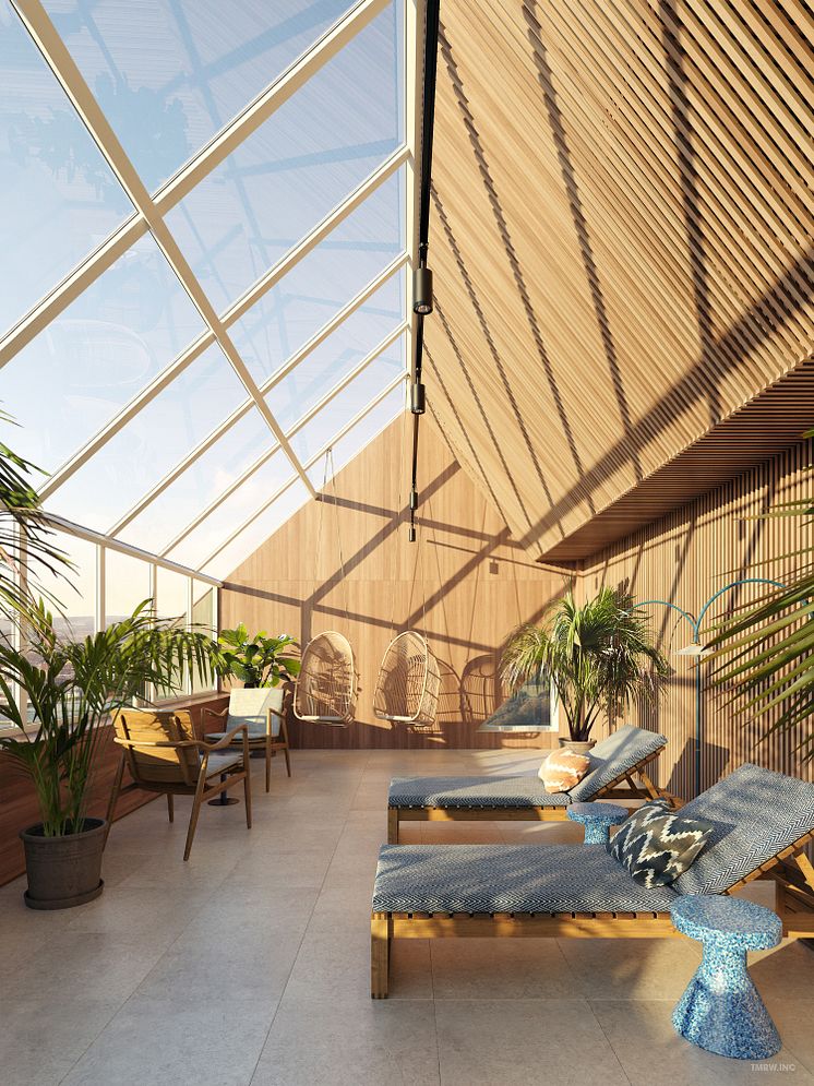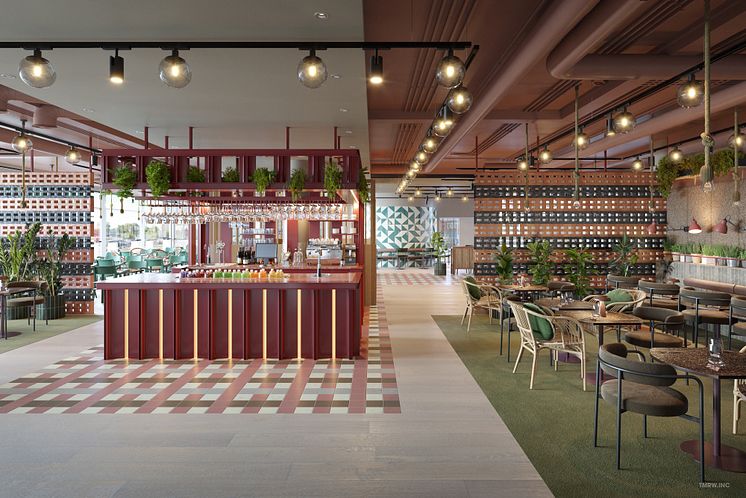 Förutom hotell öppnar Scandic även en restaurang med plats för 254 gäster i gatuplanet. På våning 17, högst upp i huset, kommer det att finnas en skybar. Här tillkommer även en wellness-avdelning med en aktivitetslounge och klättervägg. Hela hotellets utbud ska kunna nyttjas, oavsett om du är besökare eller boende i Värtahamnen.