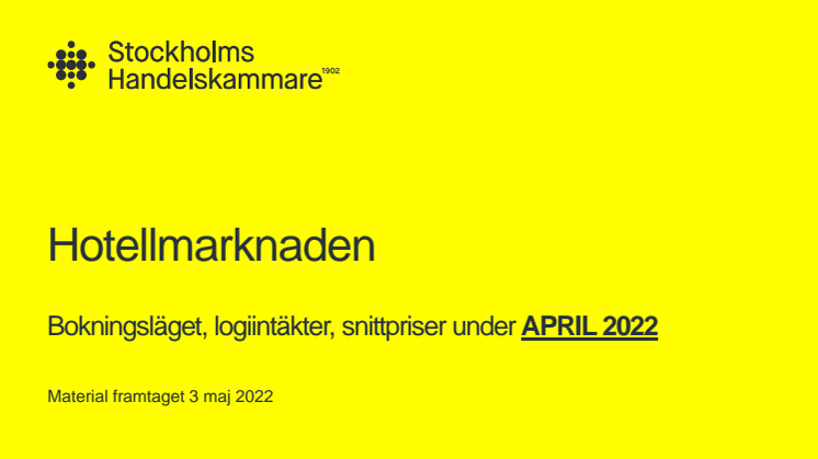Intäkterna för Sveriges hotell var under april månad 13 procent högre än motsvarande månad 2019. För hotellen i Stockholm var intäkterna 10 procent högre än siffrorna i april 2019. Motsvarande nivå för hotell belägna utanför Stockholm var +15 procent.