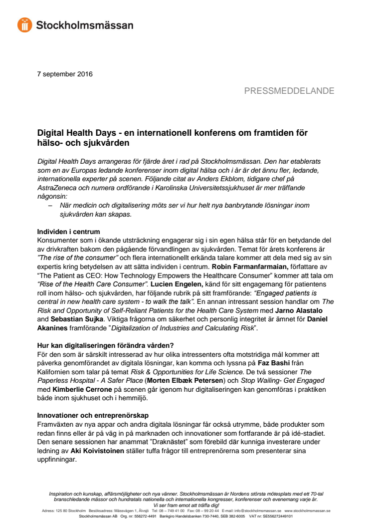 Digital Health Days - en internationell konferens om framtiden för hälso- och sjukvården