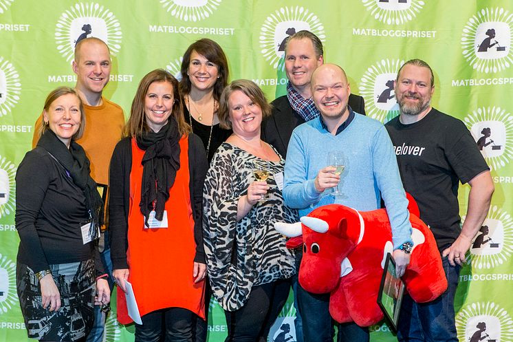 Glada pristagare och arrangörer av Matbloggspriset på Mitt kök. Foto Gustav Kaiser/Stockholmsmässan