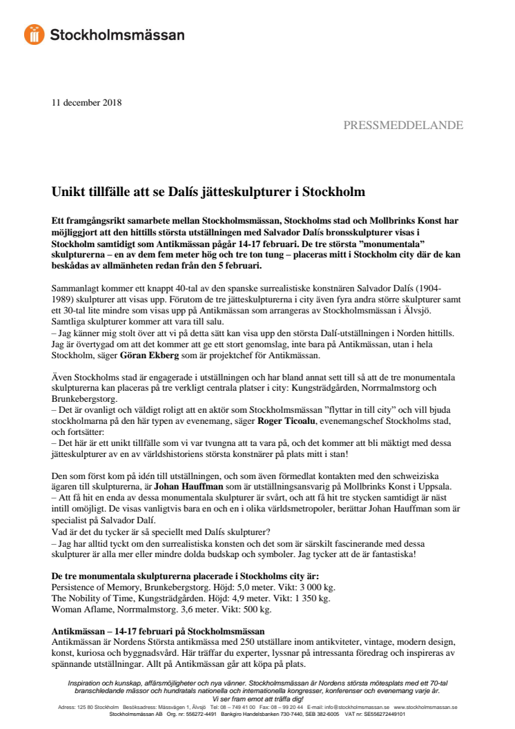 • ​Unikt tillfälle att se Dalís jätteskulpturer i Stockholm