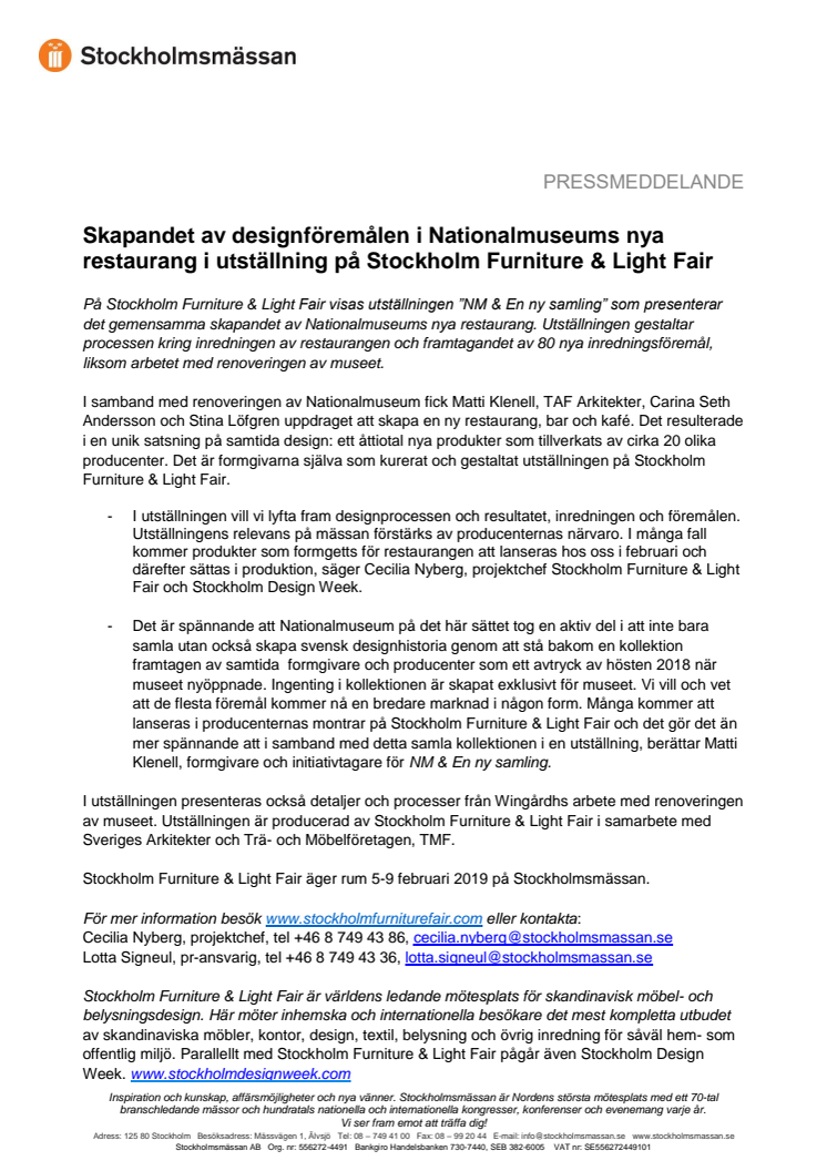 • Skapandet av designföremålen i Nationalmuseums nya restaurang i utställning på Stockholm Furniture & Light Fair