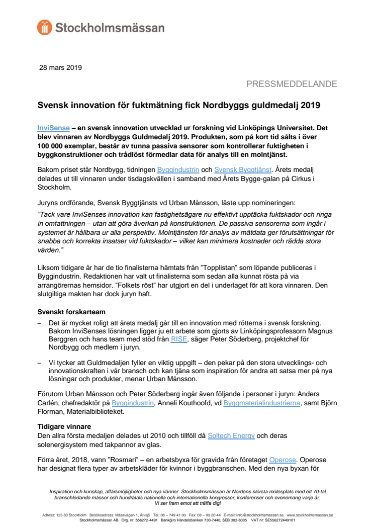 • Svensk innovation för fuktmätning fick Nordbyggs guldmedalj 2019