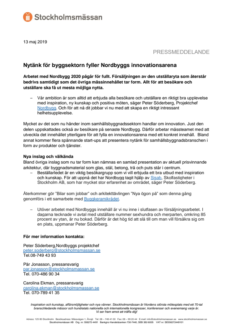 • Nytänk för byggsektorn fyller Nordbyggs innovationsarena