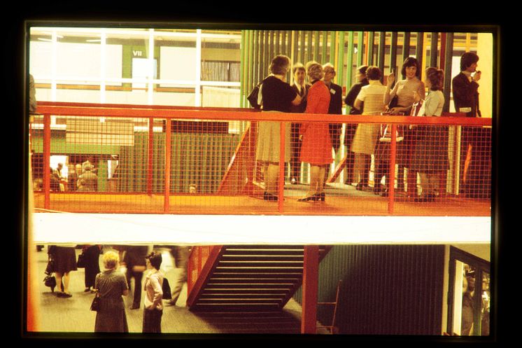 • Mässbesökare i kongressfoajén på Stockholmsmässan