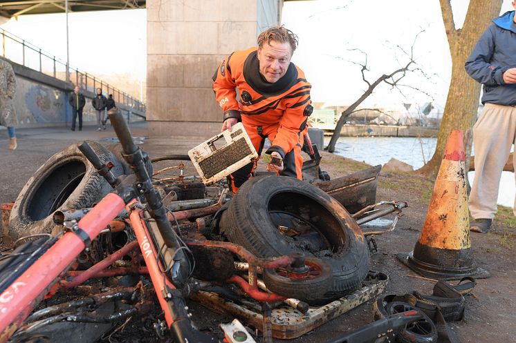 • Fritidsdykaren Fredrik Johansson bärgar allsköns skit ur Mälaren.