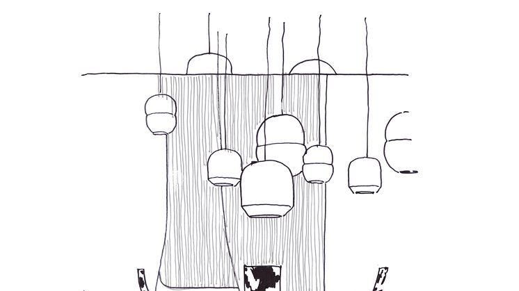 – Med enorma filtskärmar har vi delat upp området i tre delar. Varje område erbjuder besökaren olika miljöer; en för avslappning, en för möten och en för arbete under ett tak av papperslyktor, säger Edward Barber & Jay Osgerby.