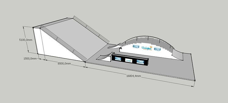 Utanför mässhallen byggs en skidbacke. Hit kan besökarna ta sina snowboards eller skidor och åka hur mycket de vill om de löst entrébiljett.