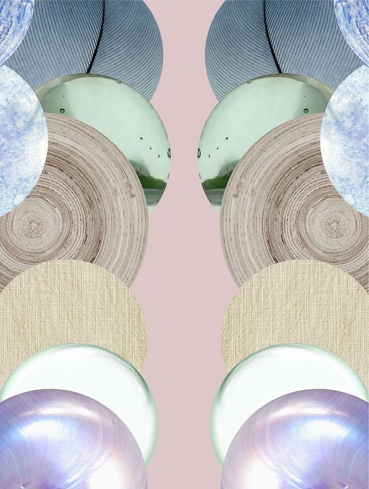 Färgskalan bjuder på dämpade, lätt smutsade pasteller mot en bas av ljusa, sandbeiga och grå toner. Mörkt grafitgrått står för kontrasten och skimrande pärlemorglans ger den annars ljusa, romantiska färgskalan en modern känsla.