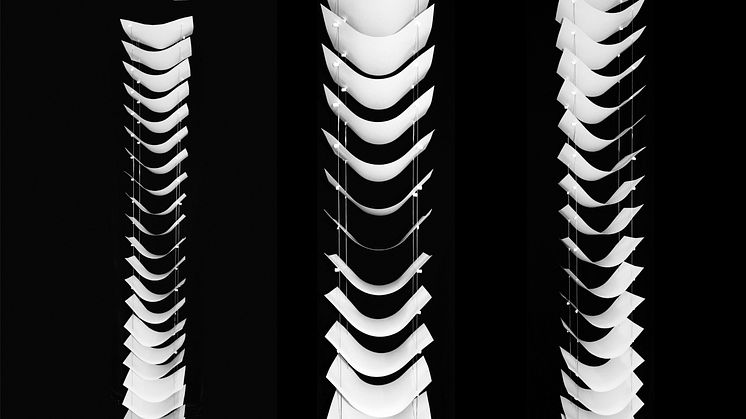 – Det gäller att allt förarbete är exakt. 1120 staplar med sammanlagt 11 000 A3-ark i 44 000 fästpunkter monteras över en yta på 200 kvm som därefter hissas upp steg för steg, säger Sanna Gebeyehu. Ibland undrar man vad man egentligen gett sig in på, men när resultatet står färdigt är det alltid värt det!