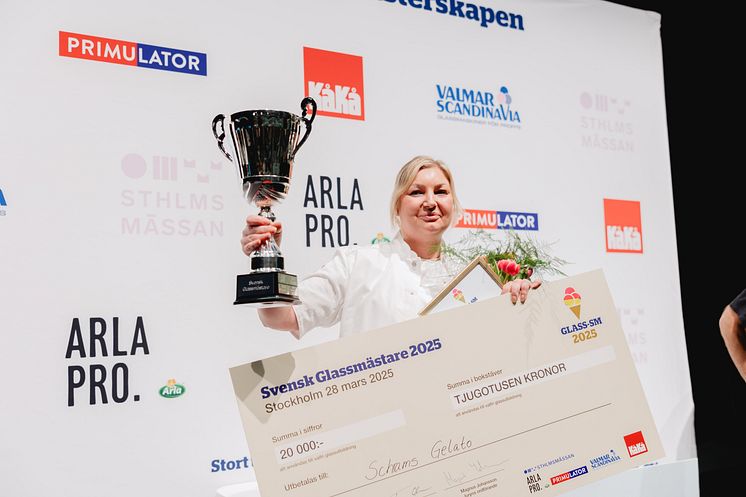 På fredagen kulminerade spänningen när 24 finalister skulle göra upp om den eftertraktade titeln som ”Svensk Glassmästare 2025”. Deltagarna tävlade i fyra kategorier: ”Pistageglass”, ”Arla svenskt smör”, ”Citronsorbet” och ”Glassmästarens val”. När alla poäng hade räknats samman, stod det klart att Schrams Gelato, med den skicklige Sabina Ståhl i spetsen kammade hem den ärofyllda titeln som ”Svensk Glassmästare 2025”.