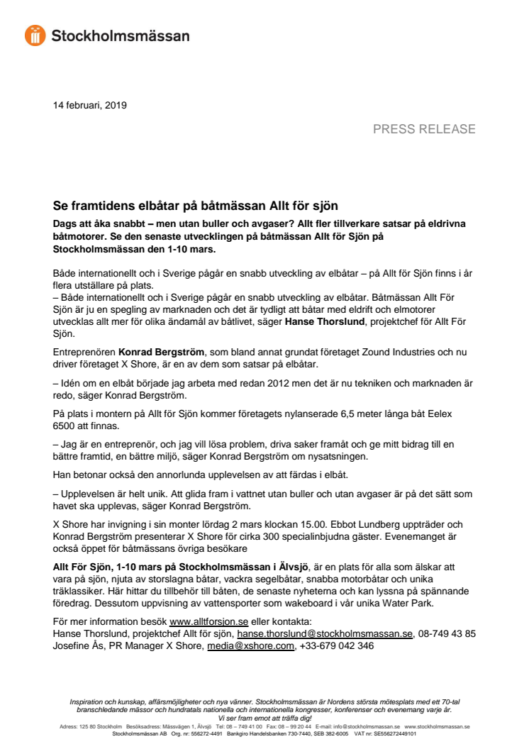 Josefine Ås, PR Manager X Shore, media@xshore.com, +33-679 042 346