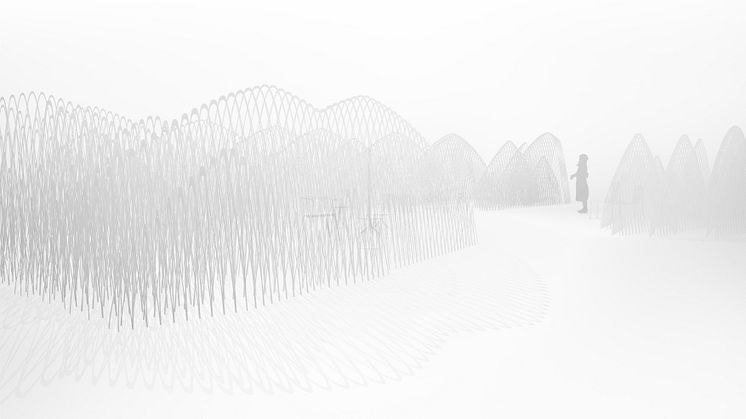 – Vi har laserskurit över 100 ark i ett skummaterialoch förvandlat dem till ett landskap som uttrycker hur designprocessen startar och utvecklas, från en enkel idé till ett färdigt uttryck. Det här är en metod som illustrerar vår designfilosofi, berättar Oki Sato.