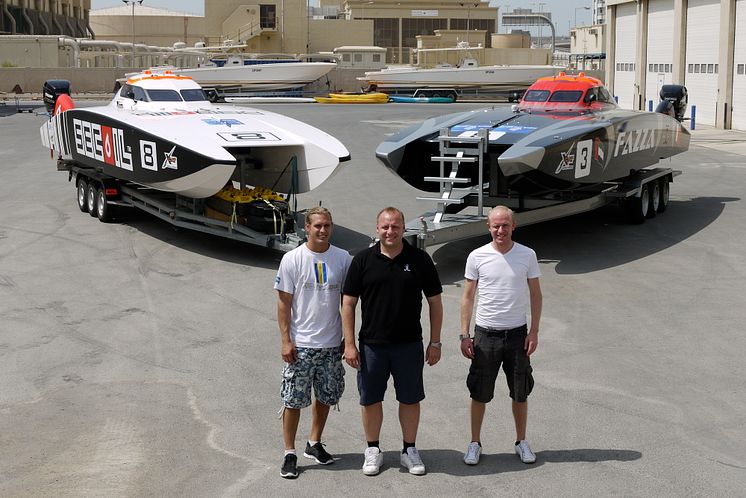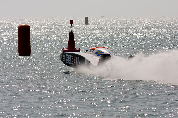 Båten är drygt nio meter lång och nästa tre meter bred. Den väger 1,8 ton och har två 300 hästars specialtrimmade motorer på akterspegeln. Läs mer på: www.teamwesterlundracing.se